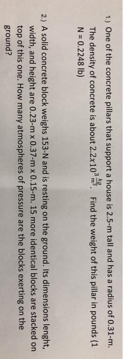 Solved Kg 1 One Of The Concrete Pillars That Support A Chegg Com